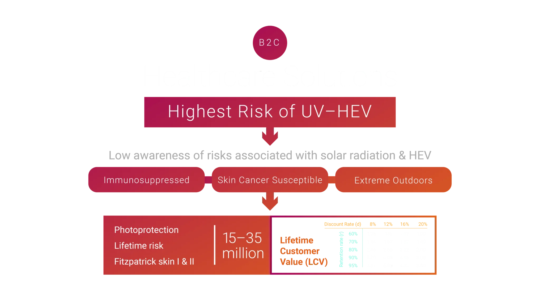 We found that the addressable markets for the Highest Risk at solar radiation are vast, but we equally discovered that three populations have not been attended by the industry:
