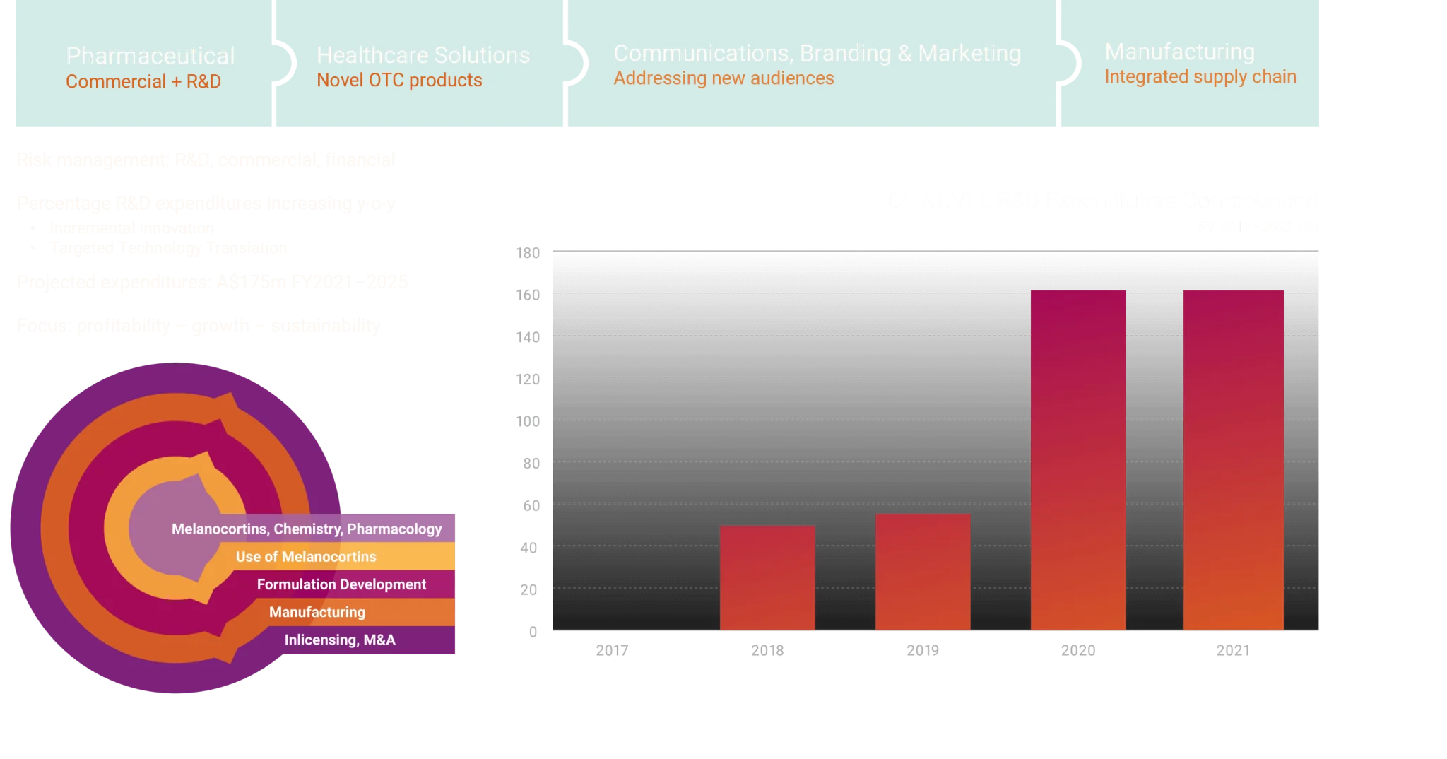 Pharmaceutical to Healthcare Solutions III Introduction Forward-looking Statements CLINUVEL Group Arterial Ischemic Stroke I Arterial Ischemic Stroke II Vitiligo I Vitiligo II Erythropoietic protoporphyria (EPP) I Download the Strategic Update IV PDF View the Strategic Update II Erythropoietic protoporphyria (EPP) II DNA repair I DNA repair II Pharmaceutical to Healthcare Solutions I Pharmaceutical to Healthcare Solutions II Pharmaceutical to Healthcare Solutions IV Pharmaceutical to Healthcare Solutions V Healthcare Solutions View the Strategic Update I Performance Financial discipline Conclusion Melanocortin portfolio View the Strategic Update III