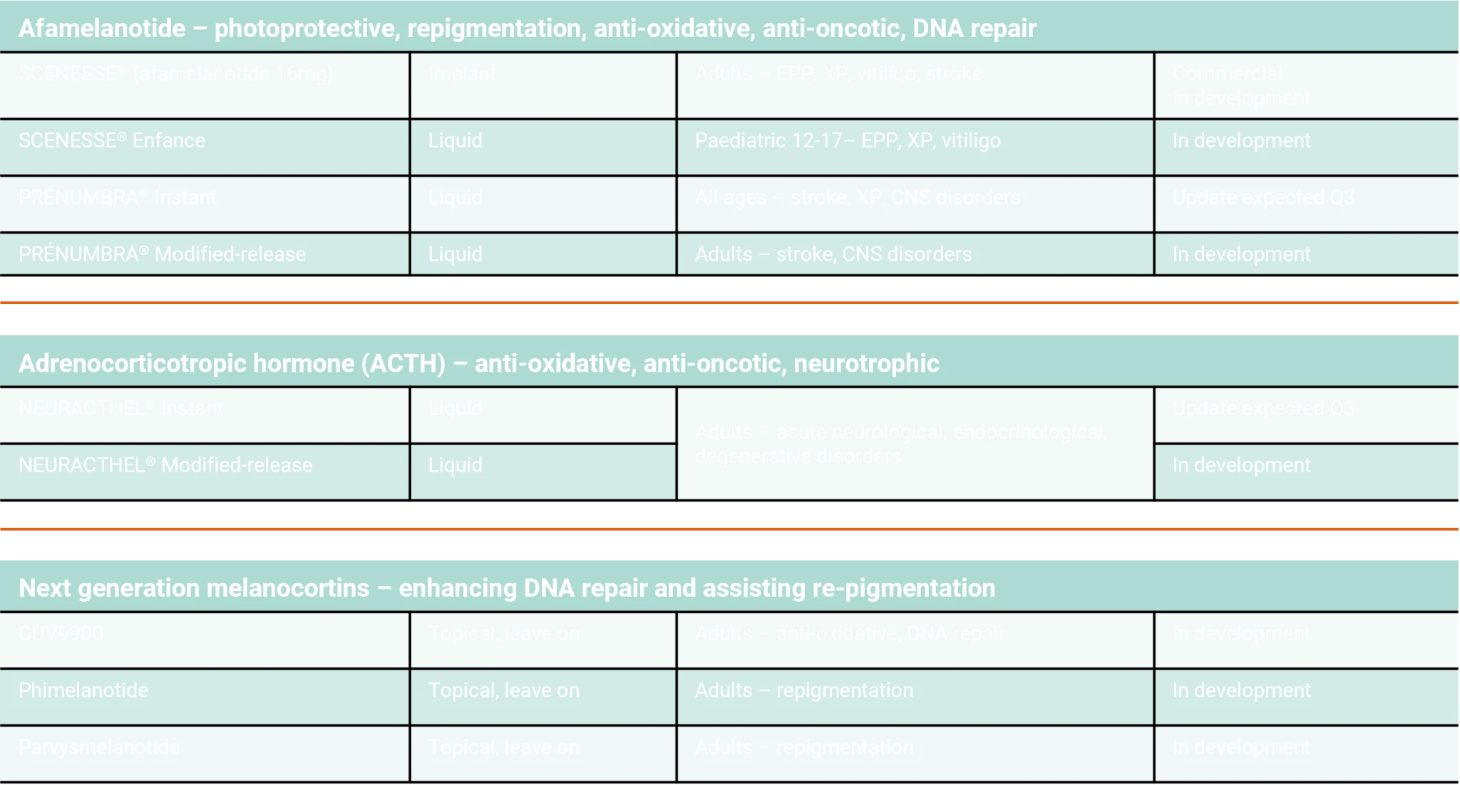 Melanocortin portfolio The table shows the current suite of melanocortins in development, while we intend to add more to our pharmaceutical portfolio.