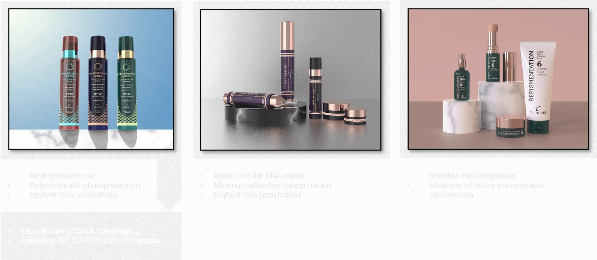 There is an obvious relationship between CLINUVEL’s progress in its clinical programs and the timing of release of e.g. the first polychromatic photoprotective product line. Simultaneously, the CUVA Campaigns will be under way to ensure HR populations are being communicated to, are being connected and are provided information on relevant topics.